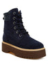 The high ankle boots are made with premium quality suede which gives them a polished and premium look, while the construction has a unique flair with the addition of the quilted collar which contrasts the overall design. The boots have a low block platform heel which is comfortable while the soft cushion insoles cut strain. The lace up design of the stylish ensures a snug fit.